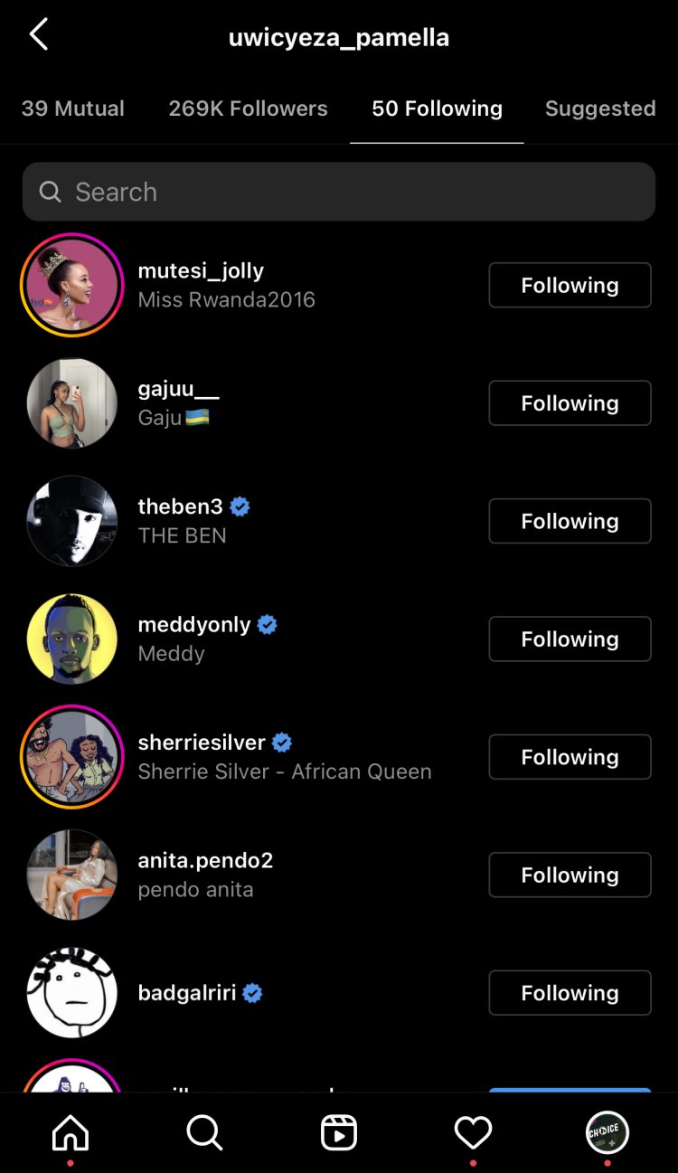 Ubwo byagaragaraga ko Pamella yahagaritse gukurikira The Ben, yakurikiraga abantu 49 ariko washaka The Ben ukamubura muri abo bantu.