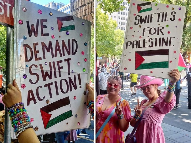 Abafana b'uyu muhanzi bo muri Burayi aho ari gukorera ibitaramo yise Eras tour, bari kujyana ibyapa byanditseho ko agomba kuvuganira Abanya-Palestine mu bitaramo bye, ibi bikaba byagaragaye mu gitaramo cyabereye i Madrid mu ijoro ryakeye.