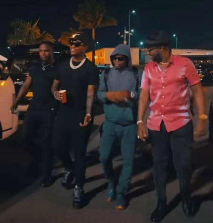 Harmonize yageze mu Rwanda ari kumwe n'itsinda ry'abamufasha mu muziki we.