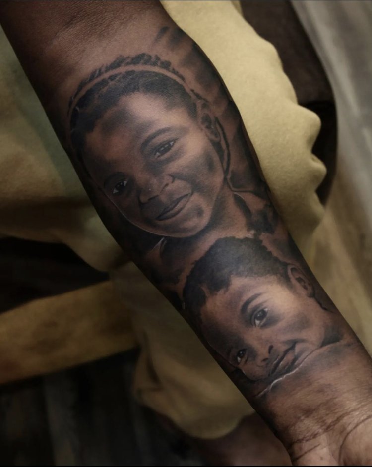 Bruce Melodie yishyizeho Tattoo y’abana be mu gihe, umuhanzi mugenzi we Christopher Muneza yari yishushanyijeho tattoo ya mama we witabye Imana.