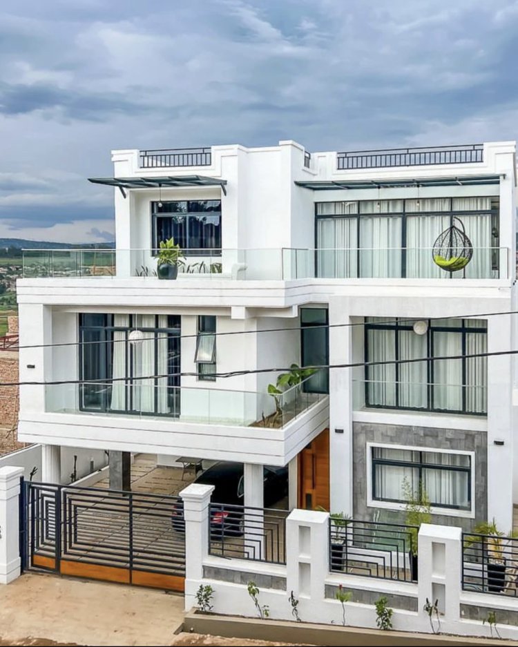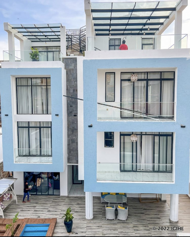 Iyi nzu igeretse inshuro enye nk’uko bigaragazwa n’amafoto, ubwogero bwizwi nka pisine n’ibindi.