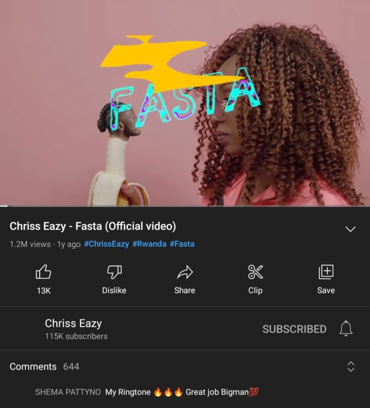 Chris Easy uri mu bahanzi batanga ikizere mu muziki w'u Rwanda akaba afashwa na Junior Giti, indirimbo ye ya mbere imaze kurebwa n'abantu miliyoni n'ibihumbi magana abiri gusa (1.2m).
