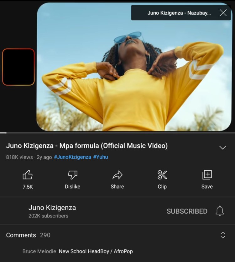 Ku ndirimbo ya mbere ya Juno Kizigenza "mpa formula" yarebwe n'abantu 818,000 kuri YouTube.