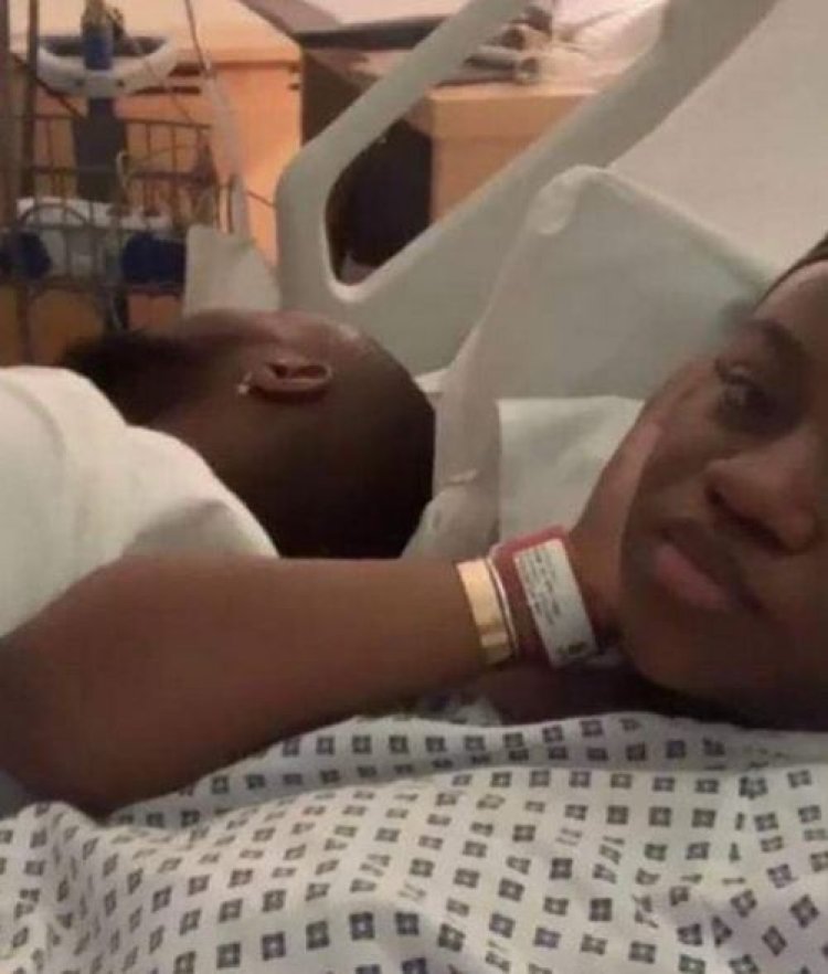 Ifoto yakwirakwijwe igaragaza Davido na Chioma bari mu bitaro bivugwa ko babyaye impanga