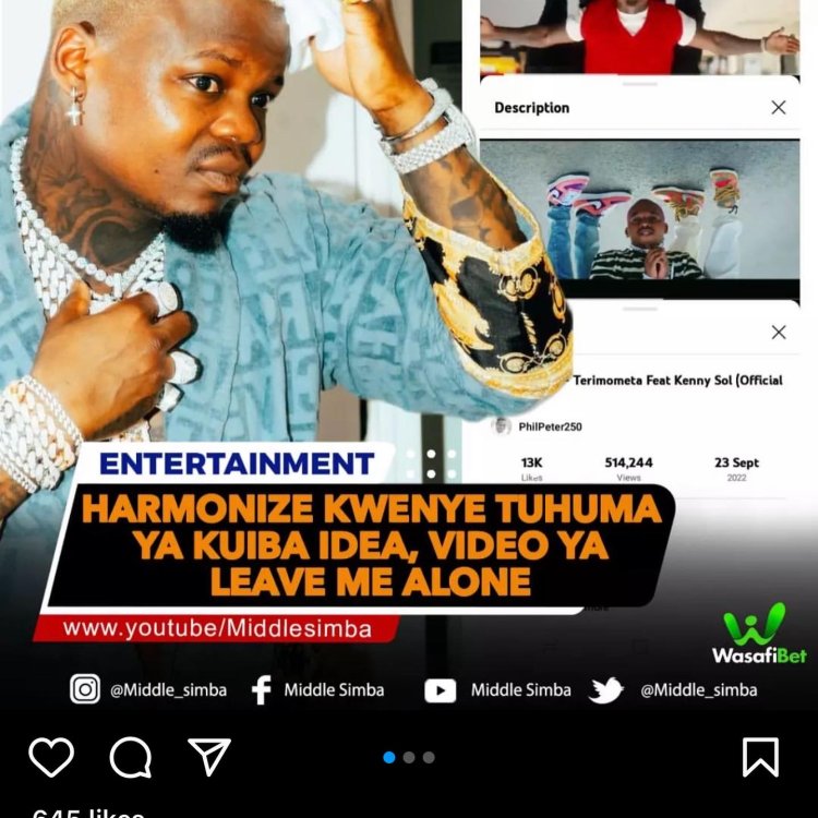 Middle Simba yagize iti “Umuhanzi Harmonize arashinjwa kwiba igitekerezo cyo mu ndirimbo “Terimometa” ya Dj Phil Peter na Kenny Sol, akagishyira mu ndirimbo “Leave me alone” yakoranye na Abigail Chams”.
