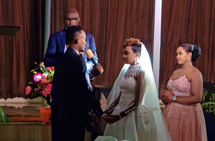 Ubwo bari mu muhango wo gusezerana imbere y’Imana kuri uyu wa Gatandatu tariki 04 Mata 2026, Clapton Kibonge yafashe umwanya agaragaza urukundo rwe mu magambo y’imitoma ayabwira umugore we.