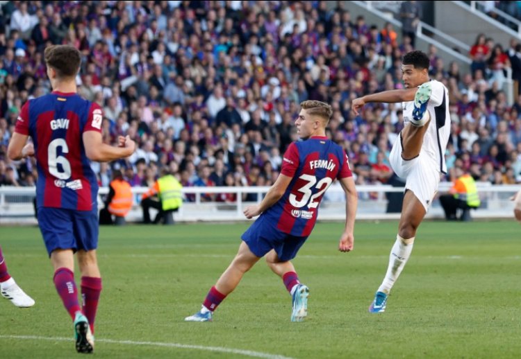 Bellingham w'imyaka 20 yafashe Barcelona mu biganza bye ashyira Real Madrid ku bitugu, ku munota wa 68 atsinda igitego cyo kwishyura ku ishoti riremereye yarekuriye hanze y'urubuga rw'amahina.