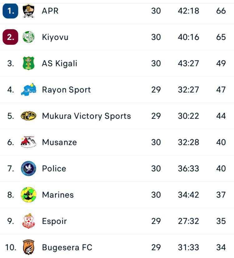 Hasigaye imikino ine y'umunsi wa 30 ngo shampiyona isozwe. Ku wa Gatanu Etincelles izakia na Mukura, Gasogi United ikine na Rayon Sports. Naho ku wa Gatandatu Gicumbi FC izakina na Bugesera FC, naho Gorilla FC ikine na Espoir FC.