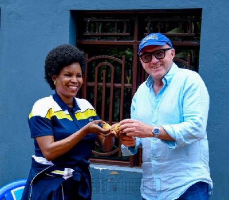 Abinyujije ku mbuga nkoranyambaga,Madamu Ndayishimiye yashyize hanze amafoto n’ubutumwa ari kokereza ibigori umushyitsi w’umuzungu wari wamusuye.