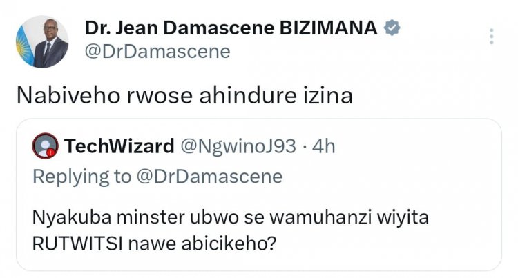 Umwe mu bakoresha urubuga rwa X, yaje kumubaza niba na Juno Kizigenza wiyise 'Rutwitsi muzi' yabihindura, Minisitiri abyera nta guca ku ruhande.