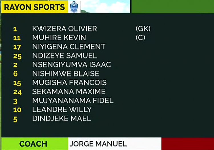 Rayon Sports yari yaruhukije abakinnyi imaze iminsi ikoresha babanza mu kibuga barimo Musa Esenu, Kwizera Pierrot, ndetse Kwizera Olivier yongeye kubanza mu izamu ku mukino wa gatatu wikurikiranya.