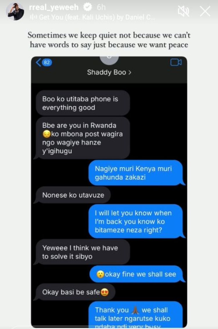Icyakora Yeweeh yagaragaje ko ibyo Shaddyboo yavuze ko batigeze bakundana ari ibinyoma, nk'uko bigaragara mu butumwa bagiye bohererezanya.