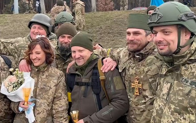 Mu mashusho yasakaye ku mbuga nkoranyambaga yerekanaga umugore witwa Lesya n’umugabo we Valeriy bahisemo gushyingirwa bambaye impuzankano za gisirikare ubwo bari ku rugamba mu gihugu cya Ukraine. Muri aya mashusho aba bombi bari bagaragiwe n’abasirikare bagenzi babo bari batashye ubu bukwe.