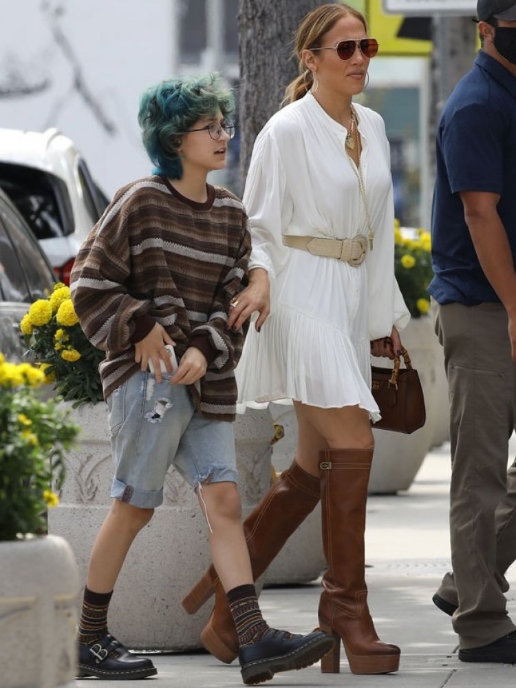 Jennifer Lopez akaba yaragaragaye yifunze mu ikanzu y’umweru ariko ngufiya kuko yageraga hejuru y’amavi, akaba kandi yari yambaye inkweto zizwi nka Bote/Boot zigera mu mavi, ndetse akenyeye mu nda igikandara kinini cy’ibara rya khaki, cya kindi nubundi abastar bakunze gukenyera, mu ntoki akaba afite isakoshi yo mu ibara rya shokola risa n’inkweto yambaye ubundi ahita agerekaho amadarubindi y’izuba azwi nka fime (Sunglasses) ni mu gihe umukobwa we Emme yagaragaye yambaye ikabutura y’ubururu y’ikoboyi ya deshire ukuntu ndetse n’amadarubindi mu maso.
