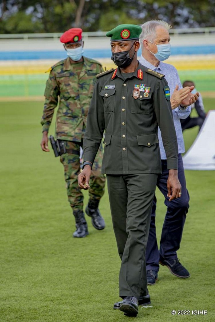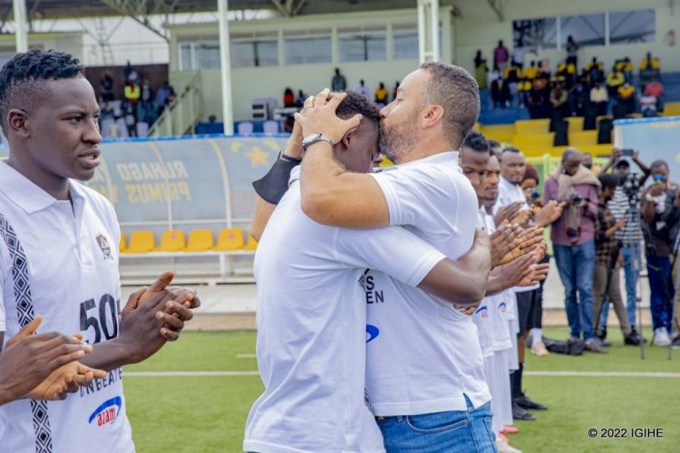 Ubwo Adil yajyaga gufata ishimwe yahawe n’ubuyobozi bw’ikipe y’ingabo yahereye ku murongo buri umwe amuhobera, bamwe muri bo akabasoma aho bari ku mirongo ibiri iteganye kugira ngo bahe icyubahiro abatoza babo banabakomera amashyi.