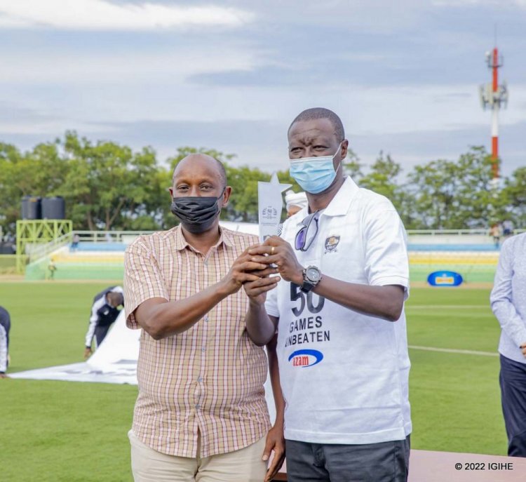 Umutoza Adil yahawe igihembo Lt Gen Mubarakh Muganga uyobora APR FC(Image:Igihe)