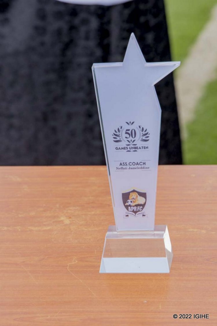 Ni igihembo Chairman wa APR FC, Lt Gen Mubarakh Muganga, yashyikirije Umutoza Adil Erradi Mohammed mu rwego rwo kumushimira iki gikorwa cy'indashyikirwa.