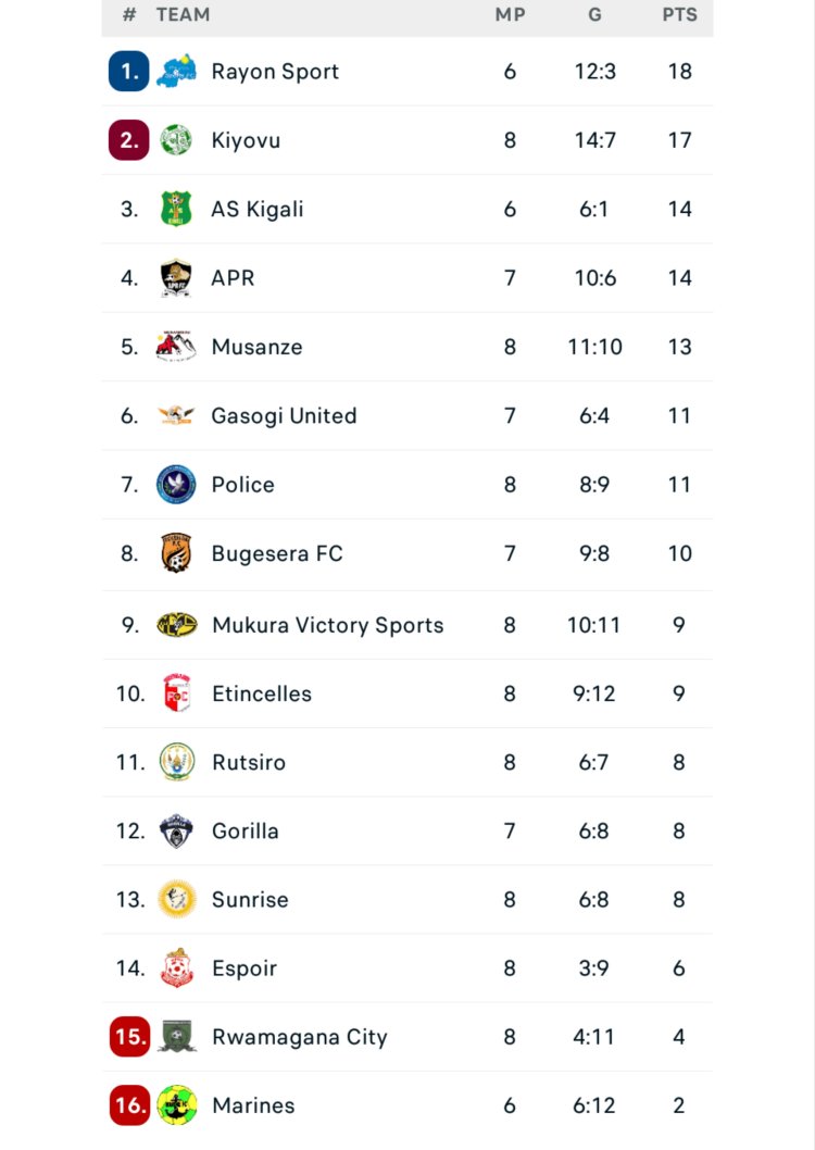 Uko urutonde rwa shampiyona ruhagaze