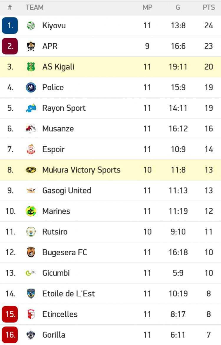 Ibi bivuze ko AS Kigali ihise igira amanota 20 aho iri ku mwanya wa gatatu ikaba irushwa amanota atatu na APR FC ya kabiri ndetse ikarushwa amanota ane na Kiyovu Sport ya mbere.