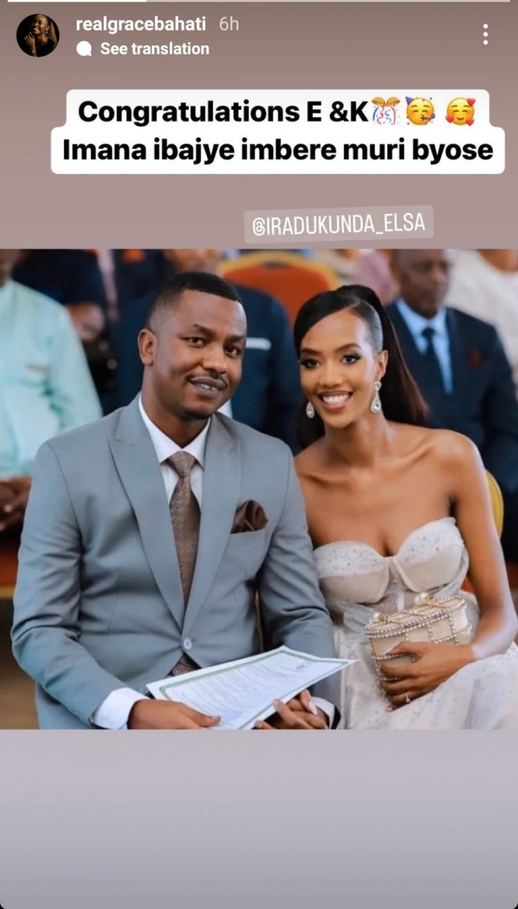 Miss Grace Bahati wabaye Miss Rwanda wa 2009 icyo gihe akaba yari ahagarariye intara y'amajyepfo, yagize ati "congratulations Elsa na Kid, Imana ibajye imbere muri byose"