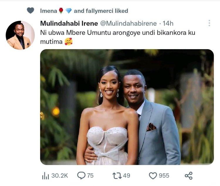 Umunyamakuru Irene Murindahabi nawe yagaragaje ibyishimo bye agira ati "ni ubwa mbere umuntu arongoye undi bikankora ku mutima"