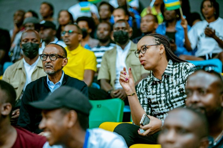 Perezida Paul Kagame na Minisitiri wa siporo Munyangaju Aurore Mimosa bari mu bakurikiye uyu mukino(Image:Rwanda Magazine)