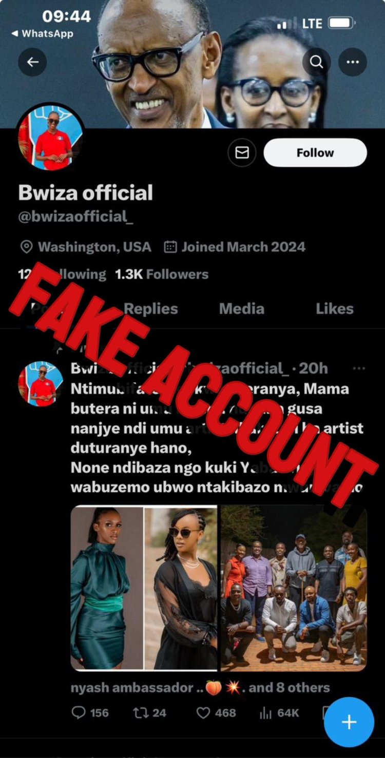 Muri iri tangazo kandi basabye abakunzi be kudaha agaciro no kudakurikira izo konti mpimbano.