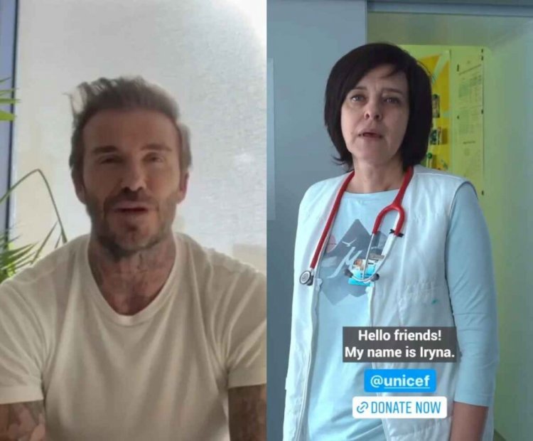 David Beckham usanzwe ari ambasaderi w'agace ka UN kita ku bana, yashyize amashusho kuri instagram ahamagarira abamukurikira gushyigikira ibikorwa by'uwo muryango muri Ukraine.