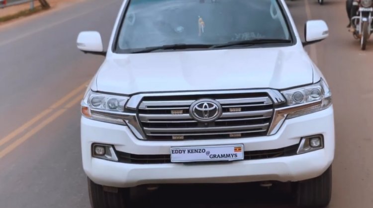 Zimwe mu modoka zari ziherekeje Eddy Kenzo zari zanditseho amazina ye mu kimbo cyo kuba handitseho ibiranga imodoka (plaque)
