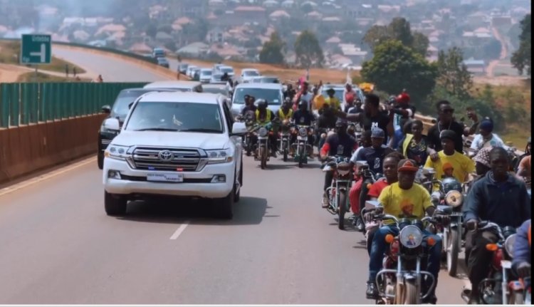 Kuva ku kibuga cy'indege cya Entebe, abantu benshi bari bazanye ibyapa birimo ifoto n'amazina ye, babanje kuzenguruka berekena uwo mudari akuye muri America agaca agahigo muri Uganda.