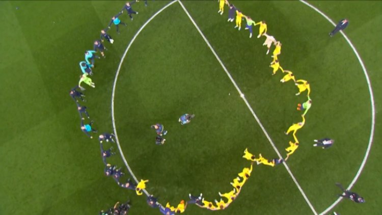Umukino warangiye abakinnyi ba Barcelona bahurira hagati mu kibuga