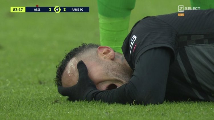 Neymar yavunitse ahagana mu kabombambari nyuma yo guserebekwa n’umukinnyi wa Saint-Etienne witwa Yvann Macon ku munota wa 85'.