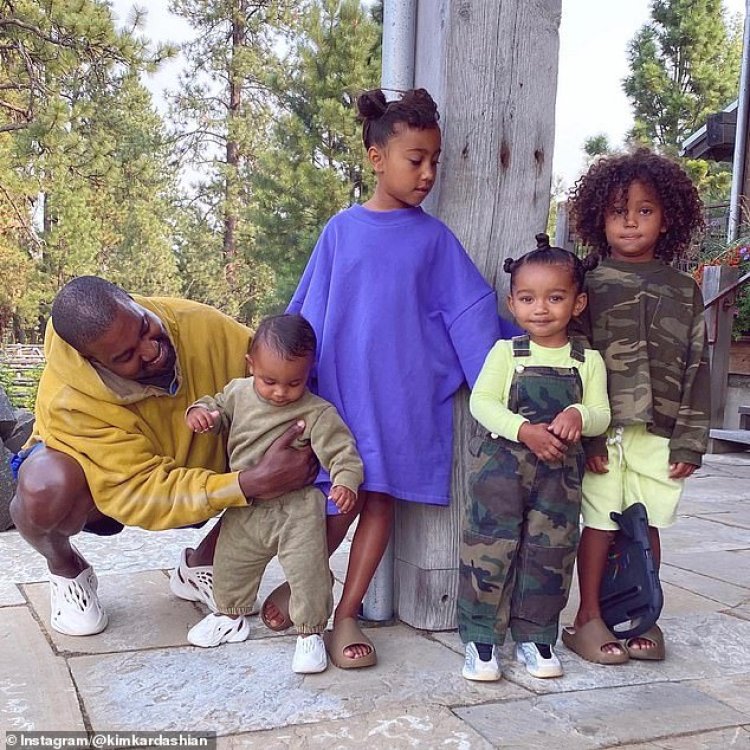 Si ibyo gusa kuko Kanye West yaje no gutungurana azana abana be bane yabyaranye na Kim Kardashian, harimo uwitwa North West, Saint, Chicago na Psalm, baza ku rubyiniro bafanya gutaramana akanya gato.