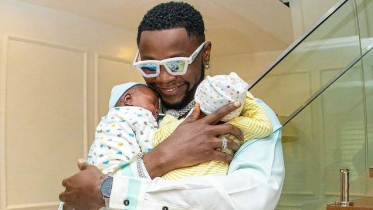 Kizz Daniel n'abahungu be yabyaranye n'umugore utaraboneka mu ruhame