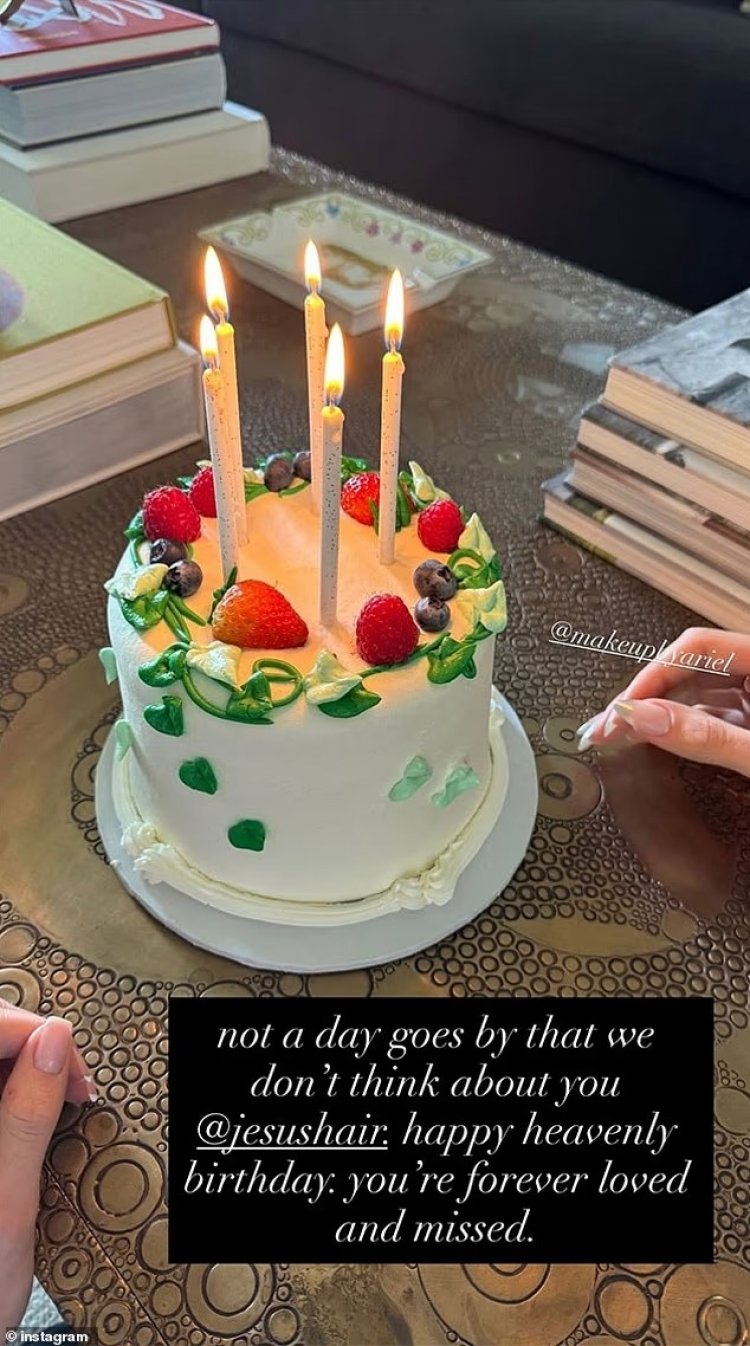 Ku wa Gatandatu ushize, tariki ya 23 Kanama 2025, ni bwo uyu mugore w’imyaka 28 ufite abana babiri, yagiye kuri Instagram ye asangiza abamukurikirana ifoto y’umutsima [cake] uriho na za buji ziri kwaka mu rwego rwo kuzirikana isabukuru ya Jesus Guerrero wahoze ari umwogoshi we wihariye mbere y’uko yitaba Imana mu mezi atandatu ashize.