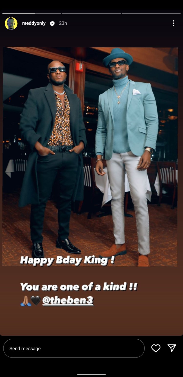 Abinyujije ku rukuta rwe rwa Instagram, Meddy yagize ati "Isabukuru nziza mwami" hanyuma ashyiraho ifoto ari kumwe na The Ben.