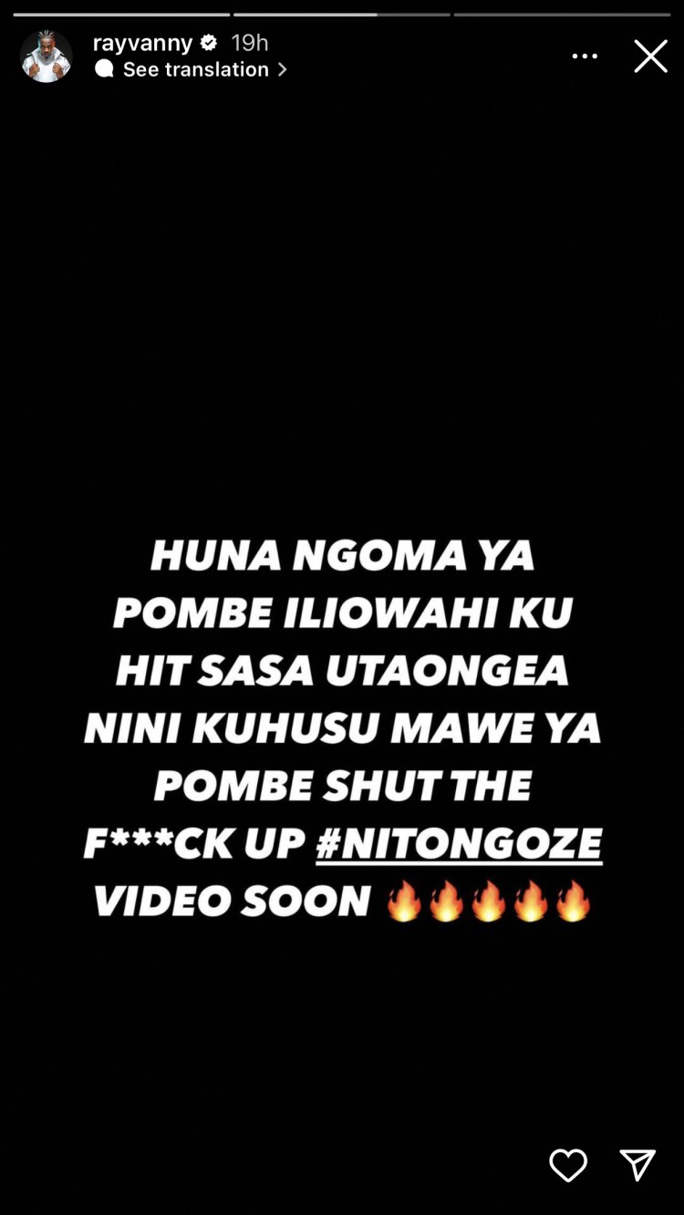 Umuhanzi Rayvanny yahaye gasopo Harmonize, amusaba kutagira icyo avuga ku ndirimbo zivuga ku nzoga kuko muzo yakoze zose ntanimwe yakunzwe. Ni nyuma y’uko Harmonize yari yasabye abahanzi ba Tanzania guhagarika kuririmba indirimbo zivuga inzoga kuko n’abazinywa ubwabo badakunda bene izo ndirimbo kandi ko abantu bose atari abasinzi.