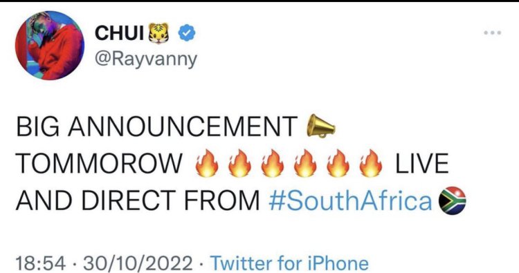Ku munsi w’ejo kuwa Mbere tariki 31 Ukwakira 2022 ubwo umuhanzi Rayvanny akaba na nyiri inzu ifasha abahanzi ya Next Level Music yari mu gihugu cya Africa y’epfo mu mujyi wa Johannesburg yatangaje ko yasinyiye amasezerano ya Miliyari na kompanyi izajya icuruza imiziki ye.