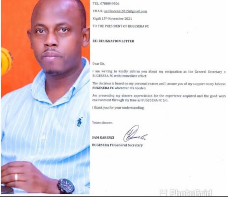 Taliki ya 03/10/2021 ni bwo Sam Karenzi yatorewe manda ya kabiri yo kuba Umunyamabanga mukuru w’ikipe ya Bugesera, ndetse akanayibera Umuvugizi.