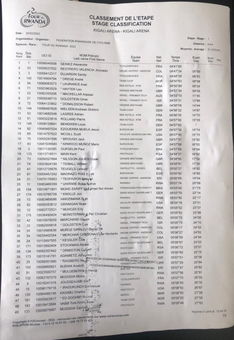 Geniez Alexandre ukinira Total Energies niwe wegukanye aka gace, nyuma yo gukoresha iminota micye igera kuri ine n'amasegonda 41 n'ibyijana 65.
