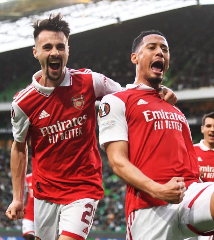 Arsenal yatangiye ifungura amazamu ku munota wa 22 ku gitego cyatsinzwe na William Saliba ku mupira yari ahawe na Fabio Vieira, ariko ku munota wa 34 Sporting yishyuye iki gitego gitsinzwe na Goncalo Inacio, ndetse igice cya mbere kirangira amakipe yombi anganya igitego kimwe kuri kimwe.