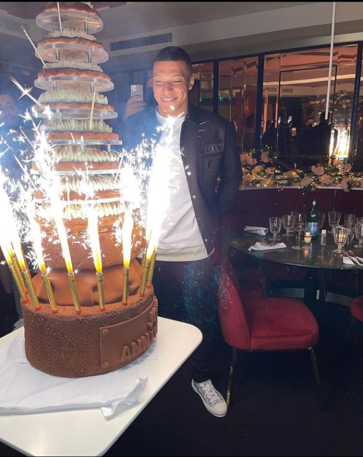Kylian Mbappe yagiye ku mbuga ze nkoranyambaga ashyiraho ifoto ya cyecye(cake) nini aho yarimo yizihiza isabukuru ye hamwe n'abakinnyi bakinana muri PSG.