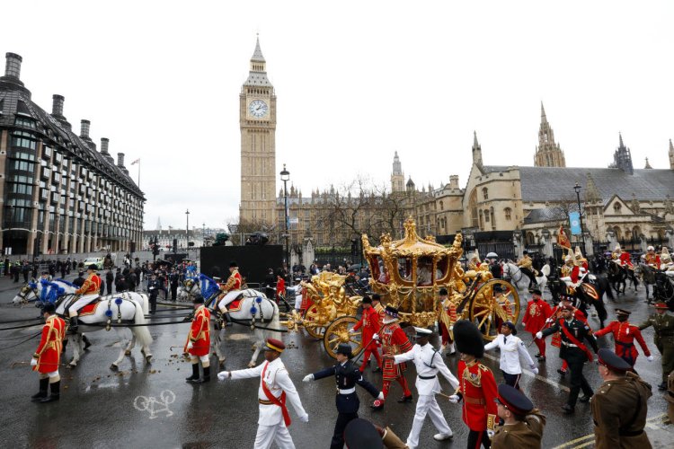 Inyuma y'umwami n'umugore we, mushiki w'umwami, Anne, uri ku ifarashi, na we akurikiwe n’ingabo z'Ubwongereza. Mu gihe irindi gare ritwaye igikomangoma William n’umugore we Kate, n'abana babo Igikomangoma George, igikomangomakazi Charlotte n’igikomangoma Louis.