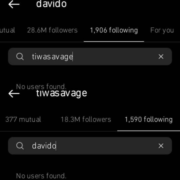 Impaka zikomeje kuba nyinshi ku mbuga nkoranyambaga hibazwa impamvu abahanzi babiri bakomeye bo muri Nigeria Tiwatope Omolara Savage wamamaye mu muziki nka Tiwa Savage, kuba hagati ye na David Adedeji Adeleke uzwi nka Davido nta n'umwe uri gukurikira undi ku rubuga rwa Instagram ibizwi nka (following).