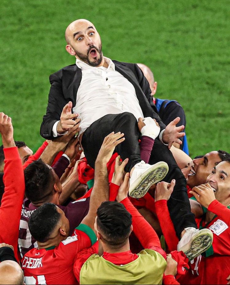 Umutoza Regragui bamuteruye bishimira intsinzi